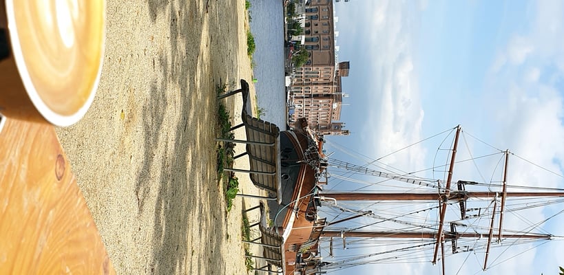 Het pad ging verder naar Muiden, waar ik nog net op een terras een Skuumkoppe soldaat kon maken, alvorens de regenbuien los barstten. We schoten een deur verder naar binnen bij restaurant Graaf Floris. Daar at ik een erg goed vispotje.