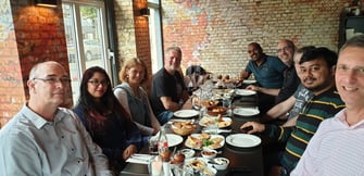 Finally. Team diner. We had to reschedule twice as of the beginning of June, but hé, except Umesh, everyone could attend, so what is time? Joop was back from holiday and Olaf from one of his business travels. Umesh has become a real Rabobank man now, so everyone understood he couldn't make it. One team, one spirit, one table.