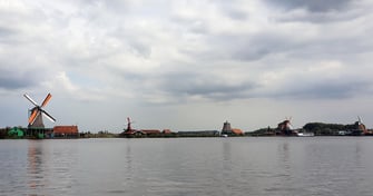 Wederom een schitterende dag. Op kantoor is de temperatuur gelukkig goed afgestemd met de prestaties die er geleverd moeten worden. Zoals een aantal weken geleden was het geen feest om in een leren pak op de motor terug naar huis te rijden. Veel te heet. Na het avondeten trok ik de wandelschoenen aan en liep langs de Zaan naar Wormerveer. Inmiddels een gebruikelijk 'ommetje', maar ik nam wel een extra brug. Op het werk zijn we met een challenge bezig om te bewegen/lopen. Ik had dus een titel te verdedigen (ik won). Zo super dat je door het mooie weer in de gelegenheid bent om na je werk nog zo lang buiten te zijn!