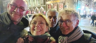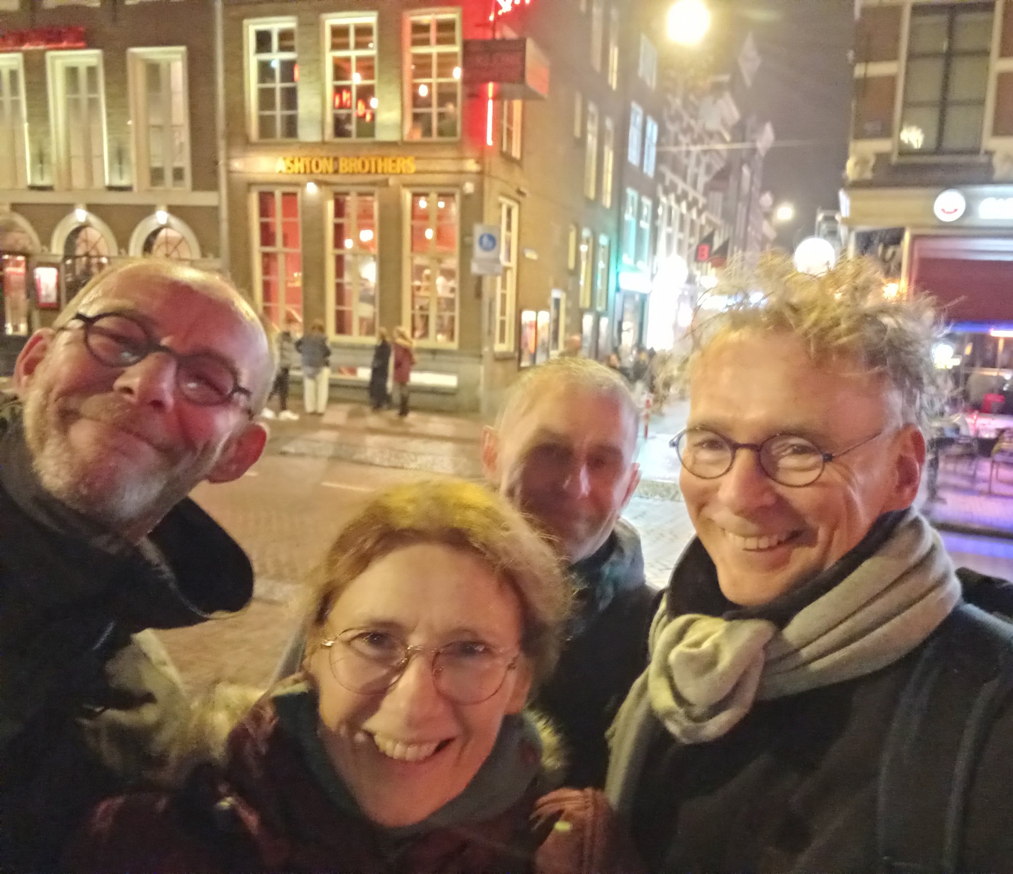 Eddy ontmoetten wij voor de deur van het Italiaanse restaurantje Da Tonino. Bert & Hansruedi had ik in de trein al getroffen. Na de lekkere pizza reden we op ons OV-fietsje naar de Kleine Komedie, waar we een voorstelling van de Ashton Brothers bijwoonden. Muziek, cabaret en acrobatiek volgen snel op elkaar, waardoor het geen enkel probleem is om gefocust te blijven op alles wat er gebeurt. Het wereldwijde plastic probleem is op zeer humoristische wijze met een doordringende ondertoon verweven in het programma. Het publiek dook van zijn plek toen de acrobatische act zich verplaatste boven de zaal. Een flink staaltje kleinkunst, dat wat mij betreft de maat van Carré heeft.