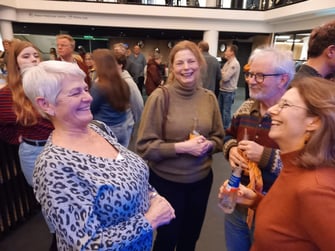 Aan het begin van de avond aten we gezellig een lekker gelakt zalmpje bij Novels. Vanuit Novels waren we zo bij het Zaantheater, waar we Eddy met zijn neef Nico en vrouw Nel troffen. Van de voorstelling van Släpstick genoten we allemaal. De nieuwe show bevat veel herhaling, maar omdat alle sketches even goed zijn, vond ik dat geen enkel probleem. Het was een verrassing om Ernst & Anne te ontmoeten tijdens het drankje achteraf!