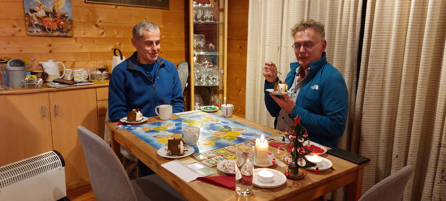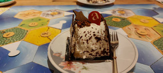 Na de Shepard pie van Hansruedi - maar ook het recept uit de Volkskrant - kwam het Catan spel op tafel. Over de resultaten hebben we het gewoon niet, het taartje was lekker, haha.