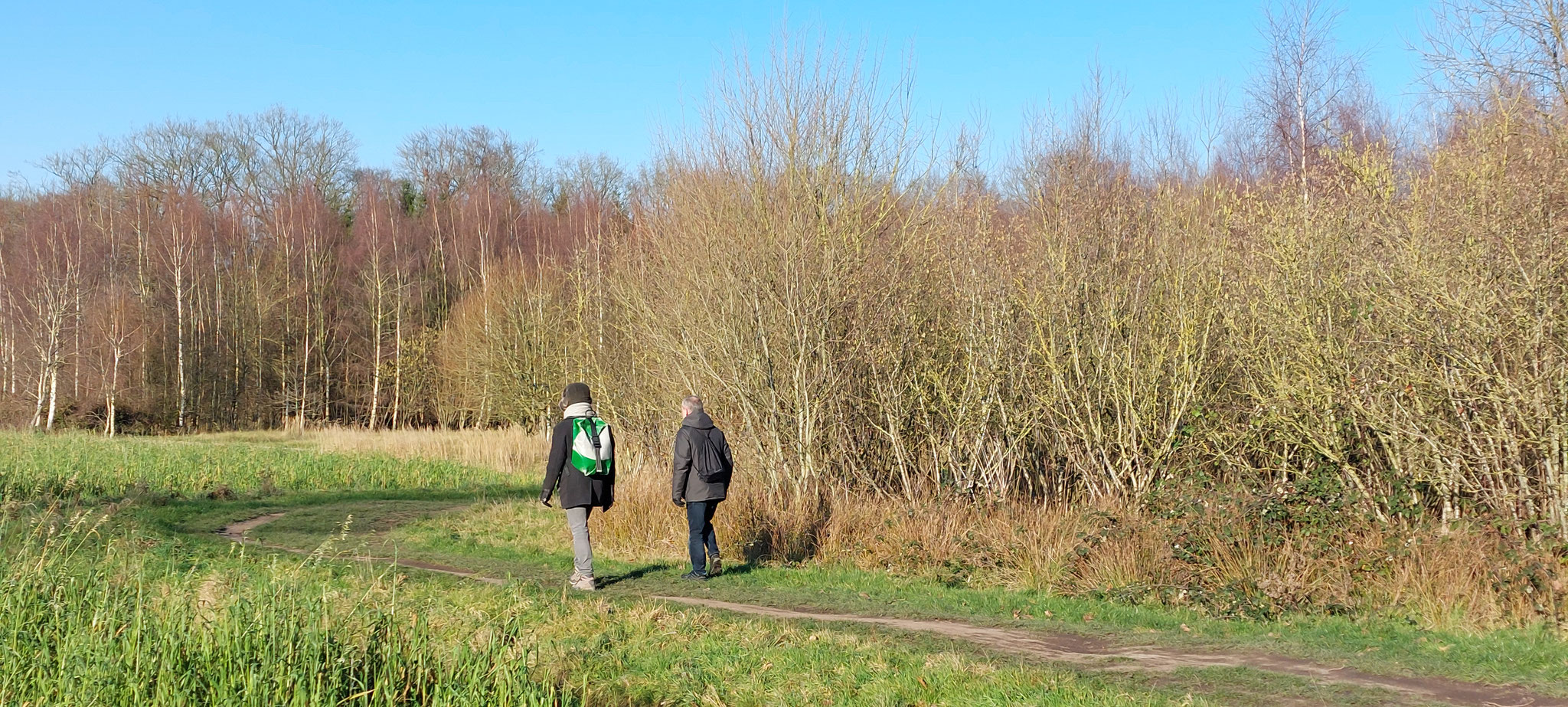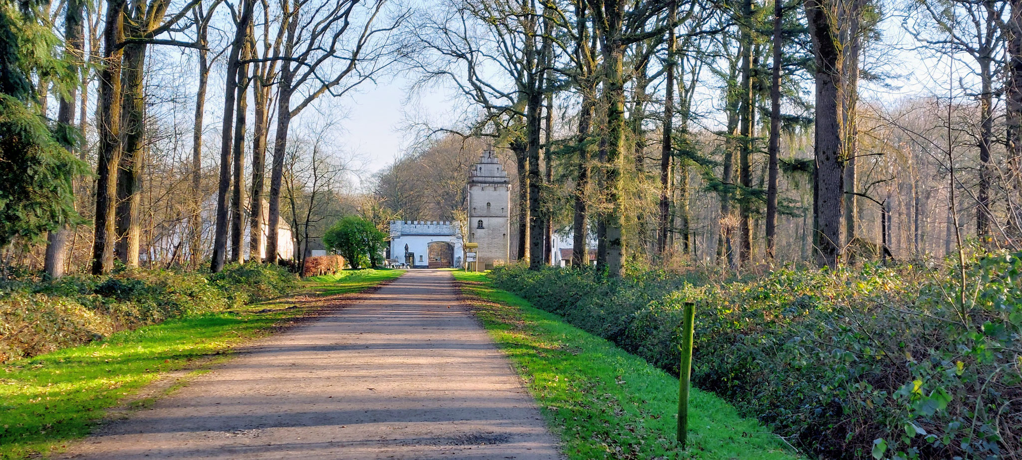 Het was weer een supermooie, winterse dag. Minder koud dan de 2 vorige dagen en de zon scheen weer volop. Een uitgesproken dag voor een wandeling. Bert had een Belgische wandelapp geïnstalleerd en een mooie route uitgestippeld. Alles bij elkaar begon het aardig op een compleet georganiseerde reis te lijken...