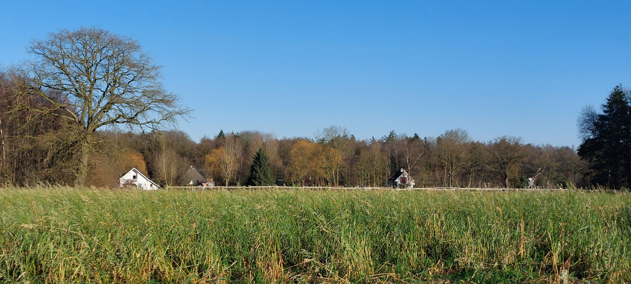 We konden zo het huisje uitlopen en aan de wandeling beginnen.