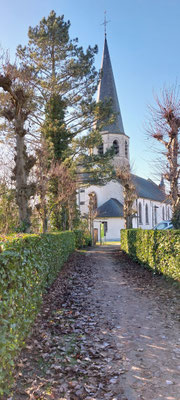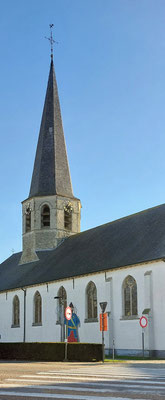 Het torentje van de kerk van Ursel konden we tijdens de route van vele kanten bekijken.